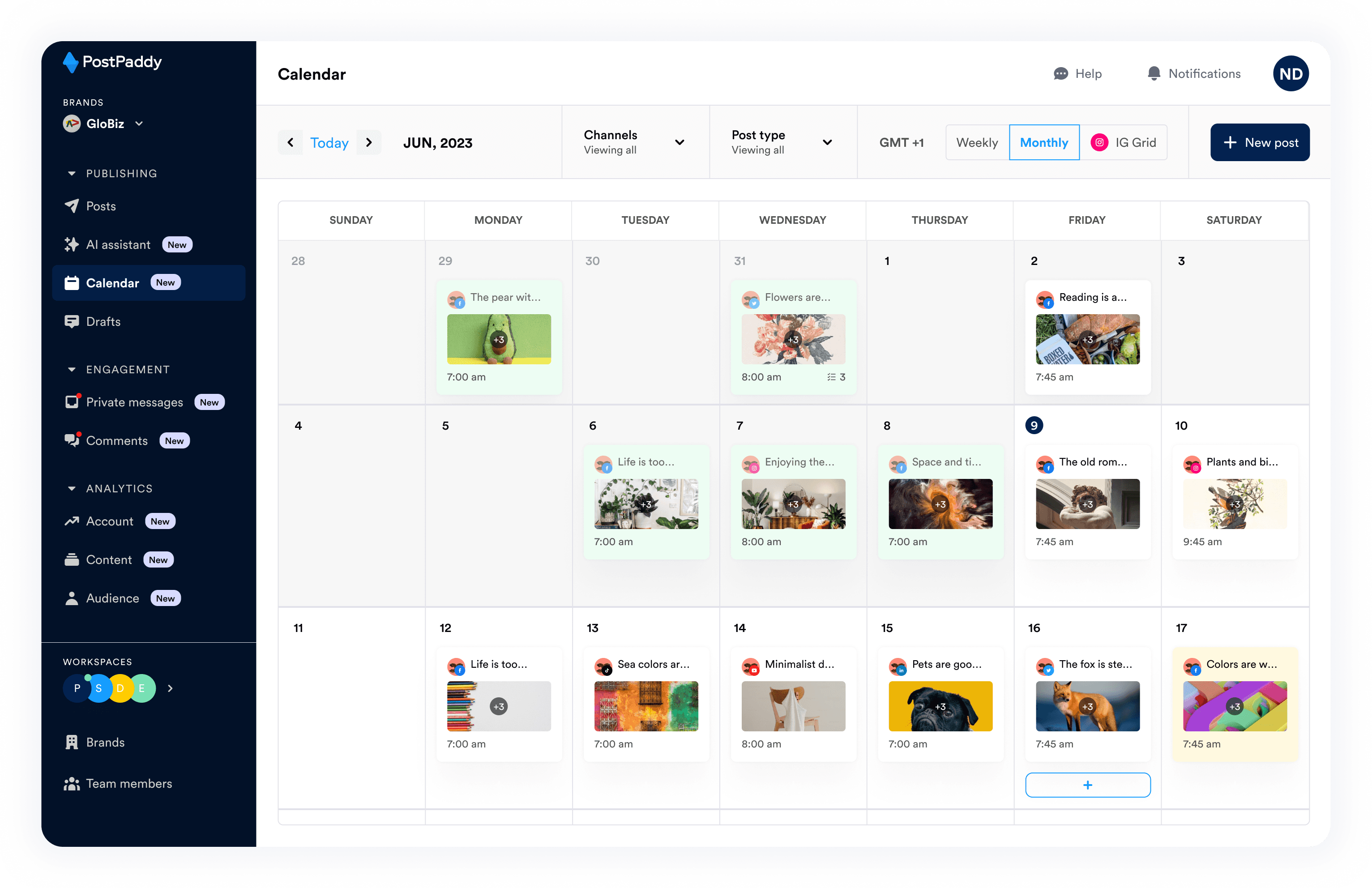Calendar view lets users visualize post distribution and content.