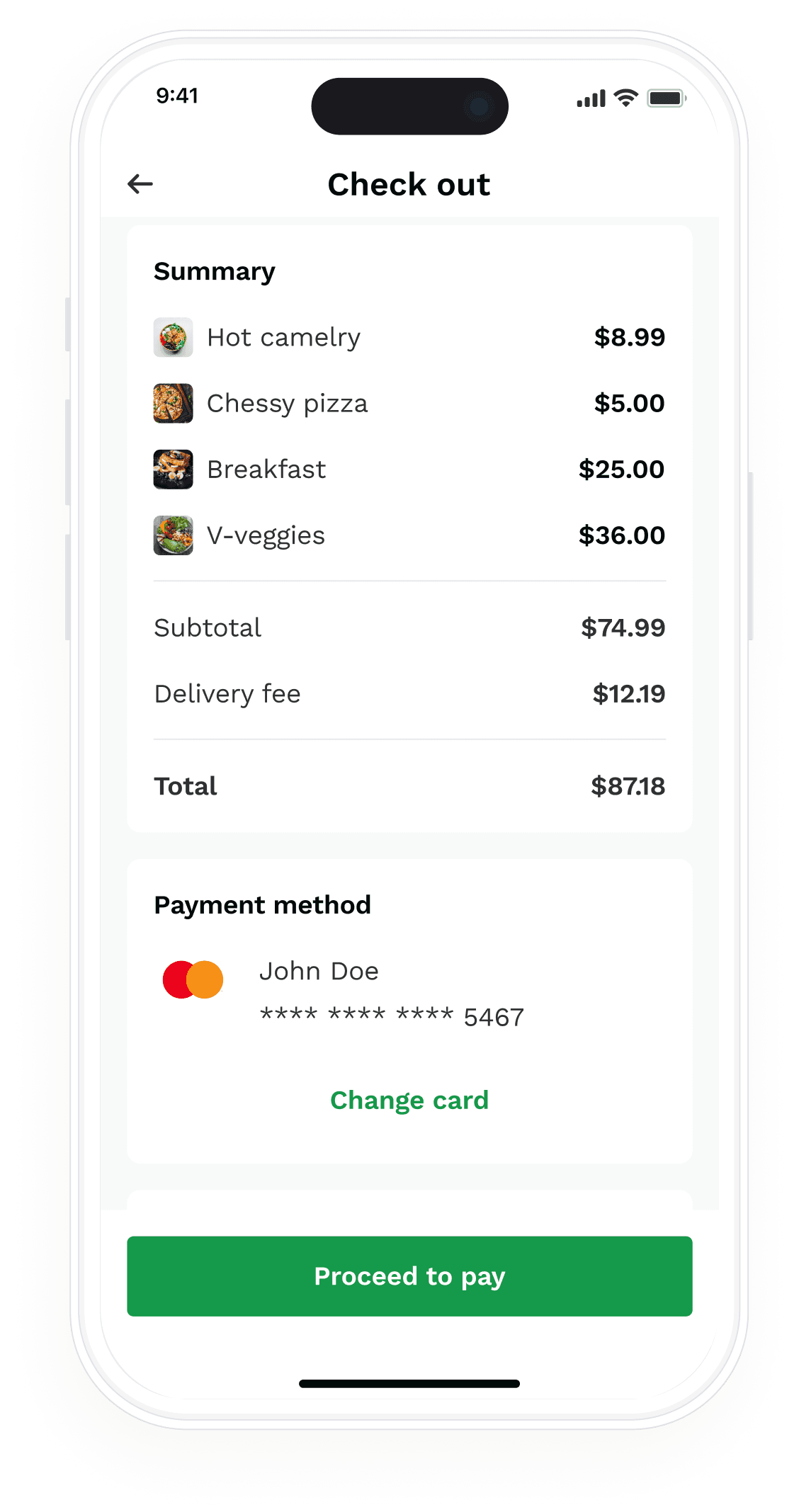 Wanted the check out page to show the items before authorizing payment.