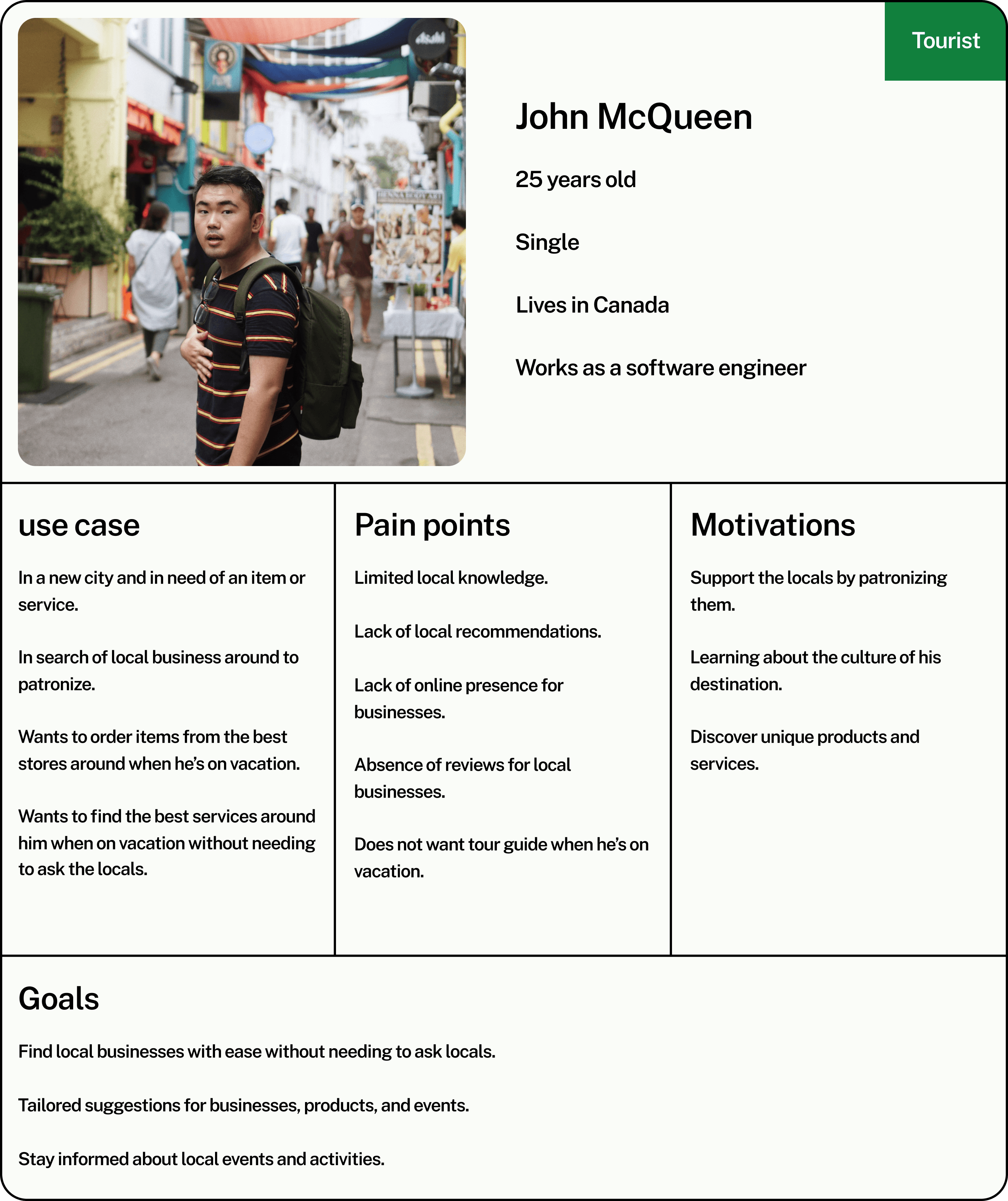 Knowing who your users is quite important to how a product works. The Bahamas is known for their tourism, therefore the app was targeted at the indigneous people of the Bahamas, tourists, and business owners