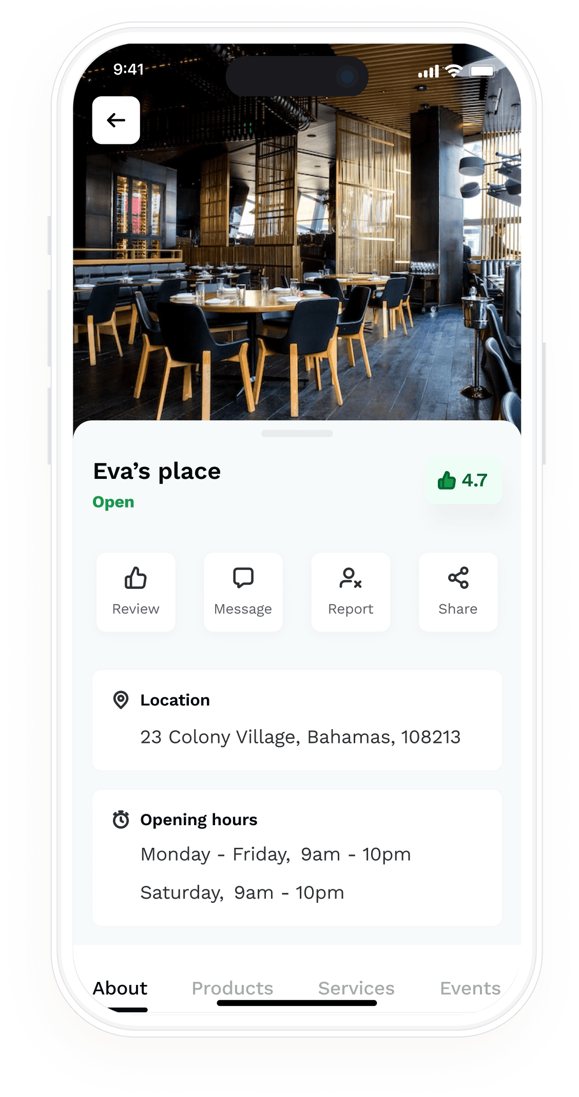 Business owners can add products, services, or events they offer.