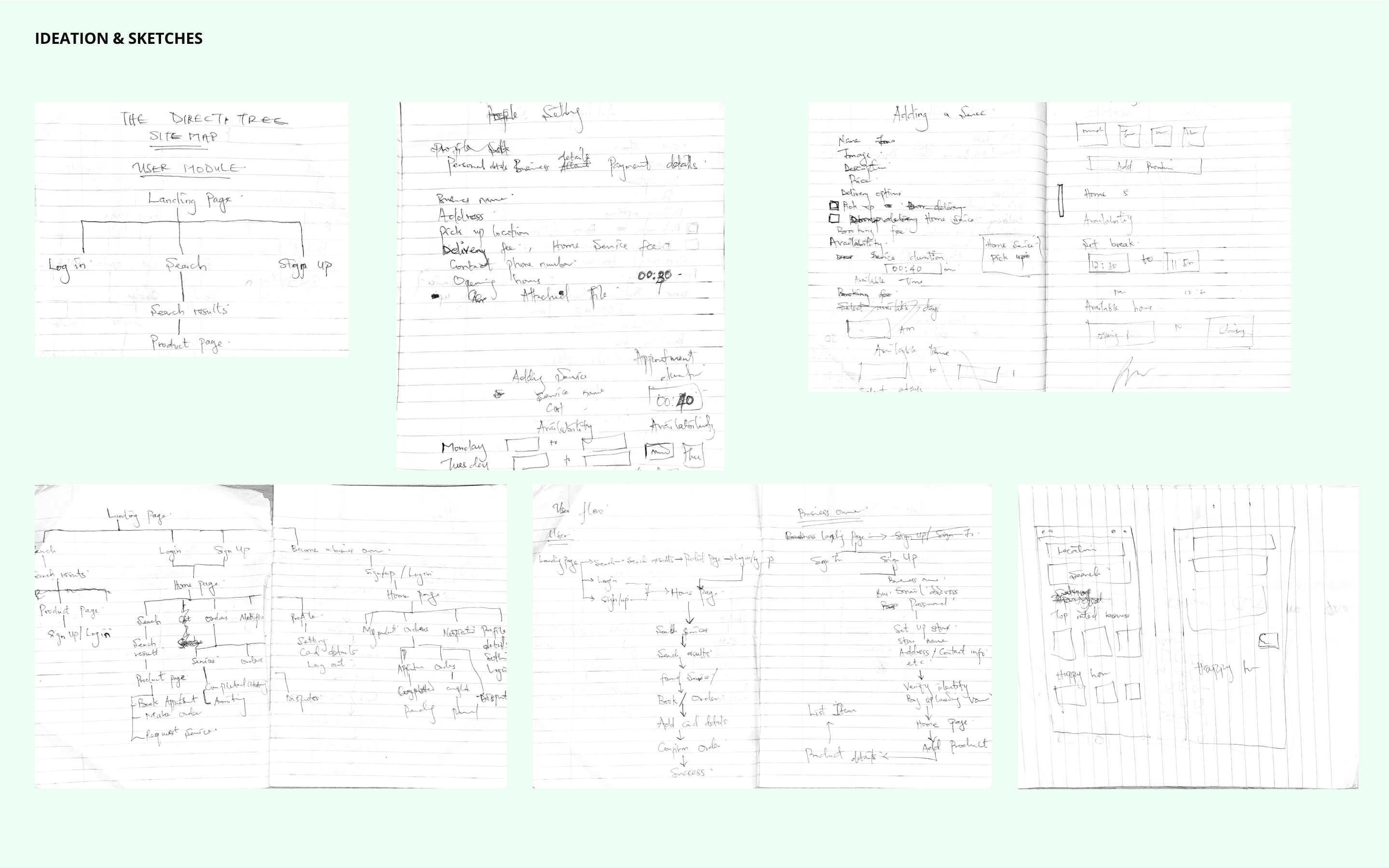 For a project as large as this, a lot of ideation and iterations have to be done before a final and beautiful result can be presented. I did a lot of paper iterations, to put my ideas down and picture the solution before delving into the designs properly. You can see some of sketches on the project architecture, user interfaces. Bear with me as they can be quite rough.