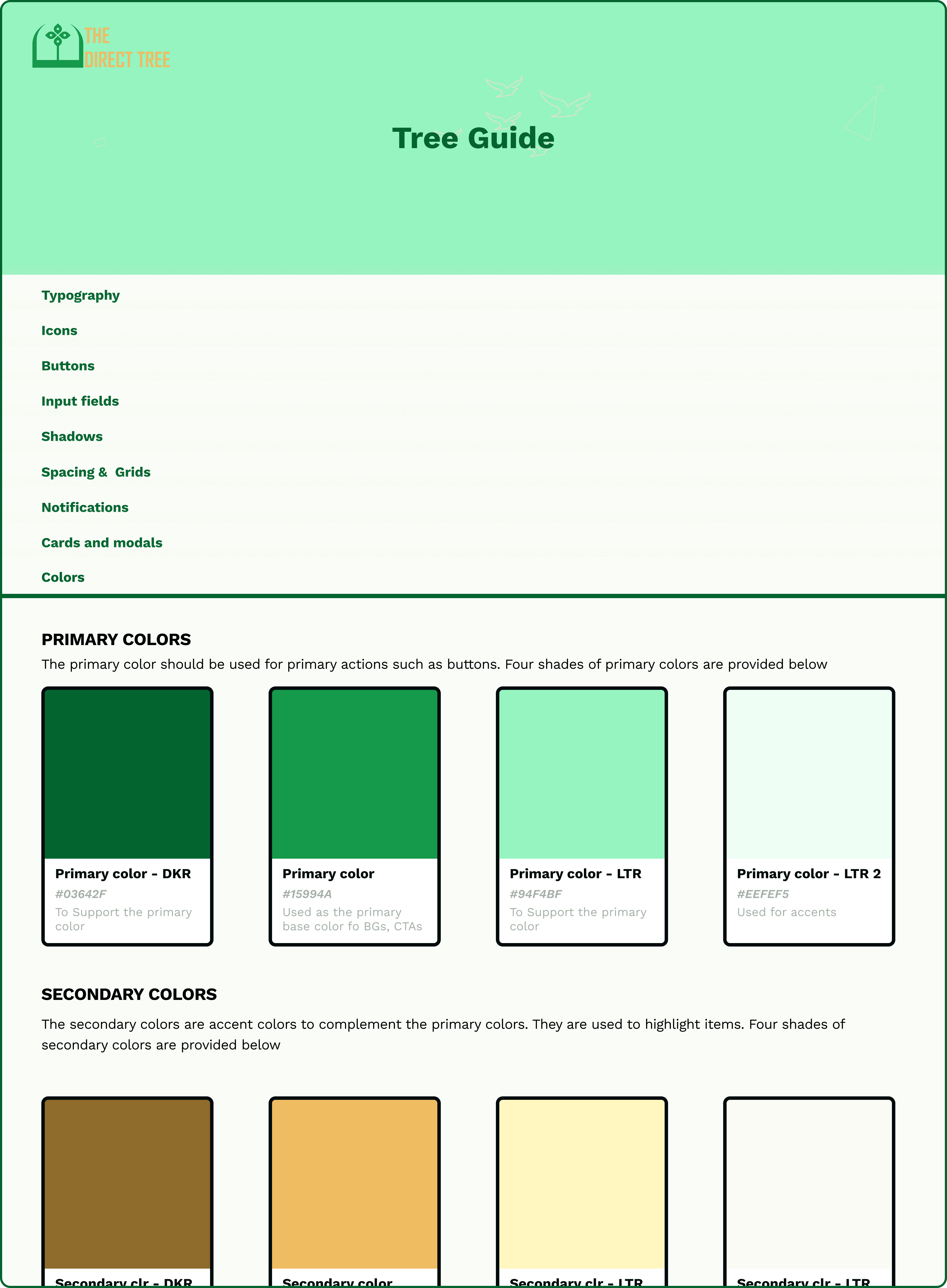 For every new project I work on, the most important thing I do first before embarking on the solution and the UI designs is to create a Design system or a style guide. For this project I created a Design system called "Tree Guide" on figma. The Tree Guide contained instructions, colors, iconogrpahy, typography, forms, buttons, alert bars, cards, modals, shadows, spacing and grids. Each item was tokenized with clear instructions on how, and when they should be used. This is essential for uniformity, scalability, consistency of the platform.