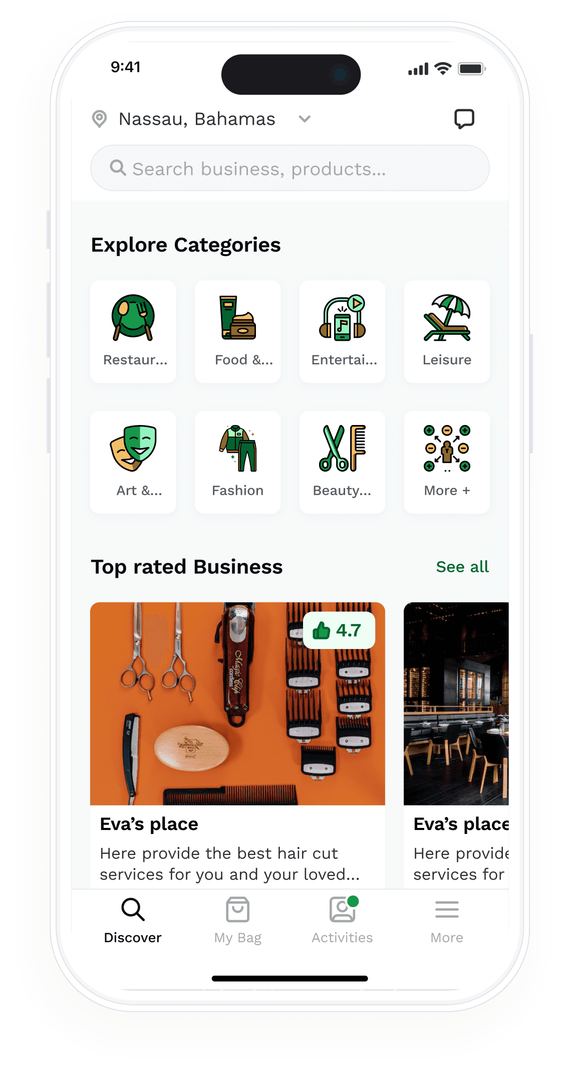 The Bahamas currently relies on paper-based business directories for locating services, products, and events, which is outdated and inconvenient which does not support buying, selling and booking of appointments. There is a need for an online platform to replace the paper directory and provide e-commerce, appointment scheduling, and event listings. The challenge is to smoothly transition from paper to online while ensuring data accuracy, user experience, and adoption by businesses and users. By addressing these challenges, the proposed app has the potential to revolutionize the way locals and tourists interact with local businesses, products, services, and events in the Bahamas.