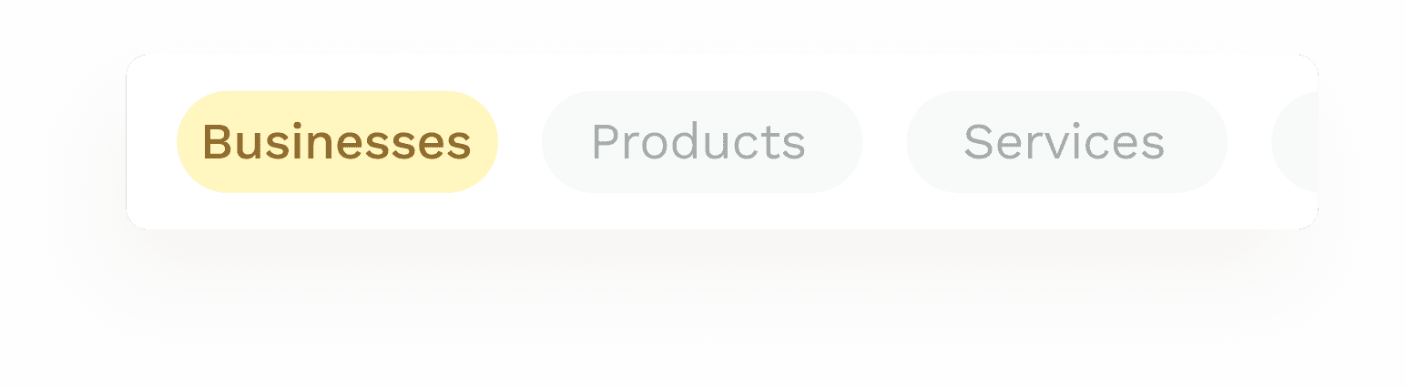 Since this was clearly a new market, it was very important that the user experience was as basic as they come. I did not want the users learning too many new things at a time. To reduce any form of confusion, I used clear titles and labels to differentiate these items and as well made sure these items were never mixed together, by creating separate tabs for search results when users search for items or navigate to the category page. This way if a user search for an item, they can select if they want results for business, products, services, or events.